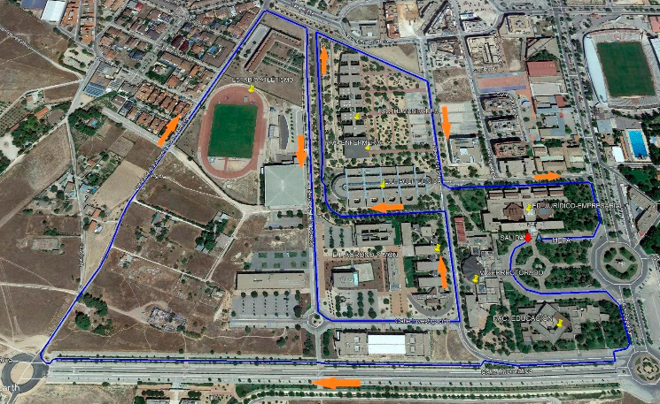 Artículo 4.- La prueba se celebrará en un recorrido anexo al Campus por pavimento en llano. La salida y meta serán en el Edificio Melchor de Macanaz (sede de las Jornadas).