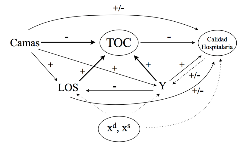Nota: TOC = Tasa de ocupación de camas; LOS = Duración de la estancia; Y = Volumen de pacientes tratados; xd = Factores de la demanda; xs = Factores de la oferta.