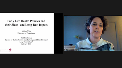 Miriam Wüst, profesora de la University of Copenhagen y The Center for Economic Behavior and Inequality, así como editora asociada del Journal of Health Economics, se encargó de mostrarnos los efectos a corto y largo plazo de algunas intervenciones sanitarias en el primer año de edad.
