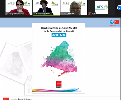 Mercedes explicó que cuando llegó la crisis sanitaria, la Comunidad de Madrid se encontraba en el último año de ejecución del Plan Estratégico de Salud Mental 2018-2020, que ya se centraba en la población más vulnerable y cuya ejecución presupuestaria consiguió aumentar los recursos humanos dedicados a salud mental, que si bien suele considerarse una inversión con menor visibilidad, en este campo es la inversión que mejores resultados obtiene. Además se tuvieron que poner en marcha rápidamente grandes iniciativas de enorme complejidad, que se describen en la Guía de actuaciones en Psiquiatría, Salud mental y Apoyo Psicosocial en la pandemia por Covid-19 de la Comunidad de Madrid, para amortiguar las consecuencias. De esta forma, se intensificaron los programas para población de mayor vulnerabilidad, servicios para personas sin hogar, mujeres víctima de violencia de género, personas con discapacidad intelectual y personas con autismo. El siguiente paso fue tratar de reparar el trauma ocasionado y también intentar adelantarse a la cuarta ola, identificando a la población diana para reforzar el sistema de salud mental (profesionales sanitarios, personas que enfermaron de COVID, y personas que habían perdido seres queridos), atajar el aumento previsto de demanda asistencial, así como el aumento de la complejidad de los casos y hacer un seguimiento de la conducta suicida. A modo descriptivo, Mercedes presentó datos de los diagnósticos claramente más prevalentes, como los ansiosos (75-80%) y muy distantes, los trastornos depresivos (15%), afortunadamente en mayor porcentaje de casos leves y moderados. Aunque son datos muy preliminares aún, el perfil es de 76% de casos en mujeres, en línea con lo indicado en la primera ponencia, y con una media de edad 51 años.